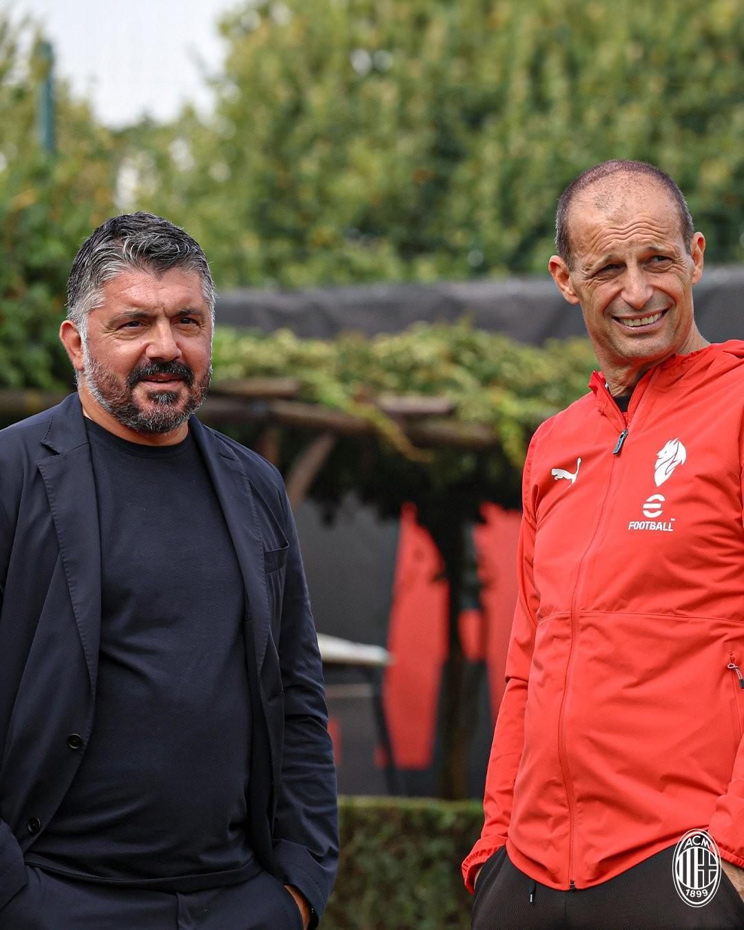 北京时间8月20日,AC米兰官方晒出意大利国家队教练组造访米兰内洛的照片,加图索与阿莱格里交流并合影。