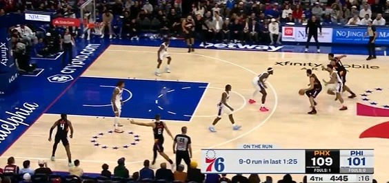 开云体育官网-奋力追赶!76人1分25秒内外开花打出9-0攻击波 追到个位数分差